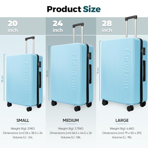 Specification: Mewtour 20 Inch Light Blue ABS Zippered Luggage Set, Lightweight with Telescopic Handle, 360° Spinner Wheels, TSA Lock Suitcase
