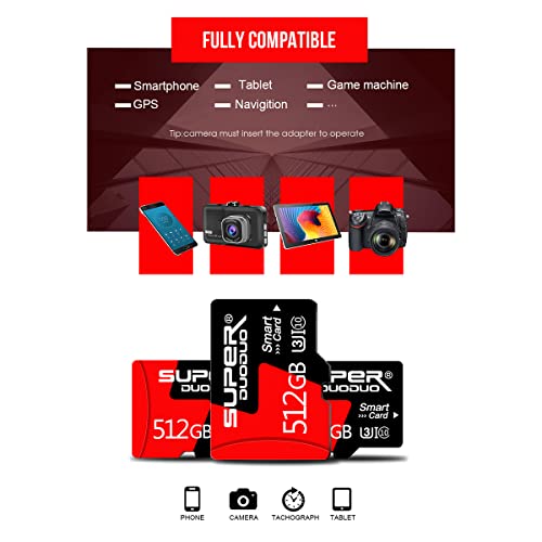 Specification: Micro SD Memory Cards 512GB Micro SD Card with Adapter High Speed Mini SD Card 512GB TF Card Class 10 for Smartphone