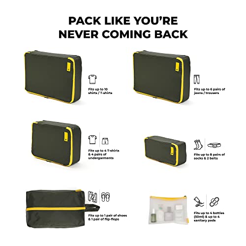 Specification: Mokobara The Packing Cube Nylon Fabric Water Resistant Travel Organizer Wardrobe Organizer Set of Packing Bag (XL,Large, Medium, Shoe bag, Toiletry Bag) (Set of 6, Homegrown Sunray) Green