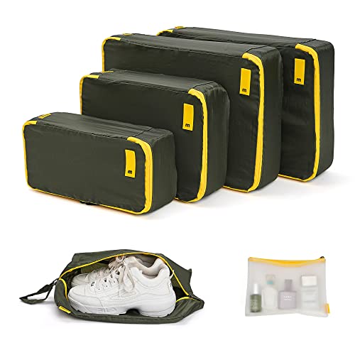 Mokobara The Packing Cube Nylon Fabric Water Resistant Travel Organizer Wardrobe Organizer Set of Packing Bag (XL,Large, Medium, Shoe bag, Toiletry Bag) (Set of 6, Homegrown Sunray) Green