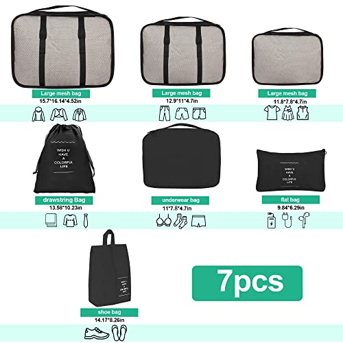 Specification: Niwlix Nylon Travel Organizer 7 In 1 Packing Cube For Travel Space Saver Laundry Cosmetics Luggage Makeup Bag Organizers Set With Shoe Bag For Travel (Black)