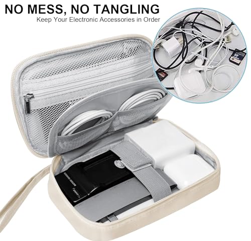 OCEANEVO Mini (18 x 11 x 4 Cm) Gadget Organizer Bag for Travel, Hard Disk Pouch Case for Earphone, Pen Drive, Cables, Wire, Power Bank, HDD etc – Mini – Beige