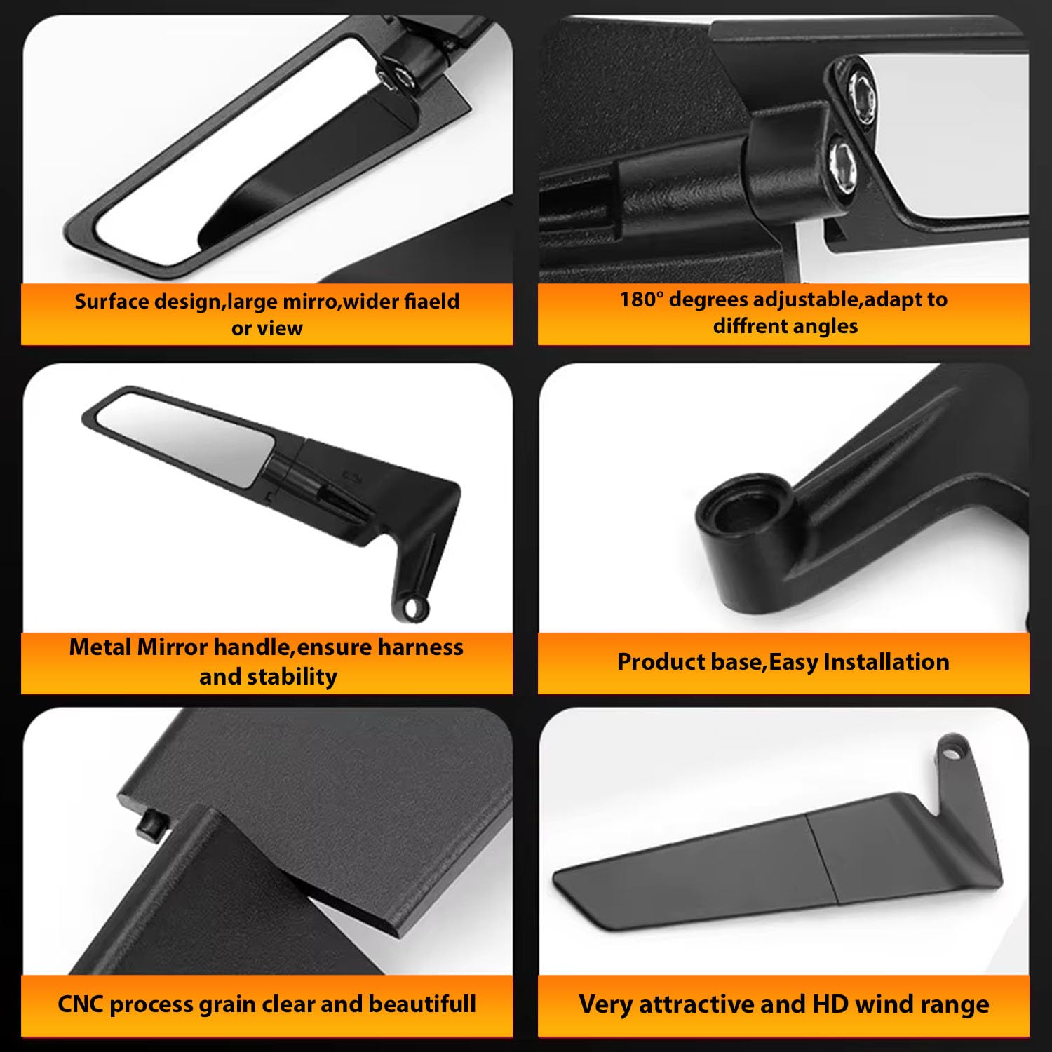 OTO2EYE Universal Motorcycle Rear View Mirrors Set – Adjustable 180° Rotating Side Mirrors with Stealth Wind Wing Design – Fits All Motorbikes – York Nut 8mm & 10mm (Left & Right Pair)