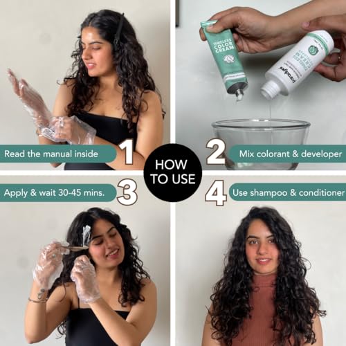 Enriched Ingredients: The color cream is enriched with Hibiscus, Amla, and Aloe Vera extracts, while the developer cream is fortified with nourishing Almond, Flax, and Olive Oil, ensuring a glossy and vibrant hair result.