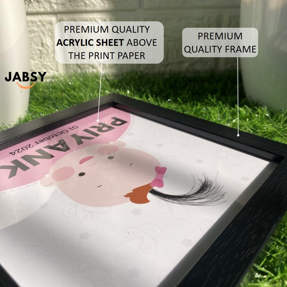Protective Cover: Transparent acrylic sheet safeguards the print and hair keepsake, ensuring it remains pristine.