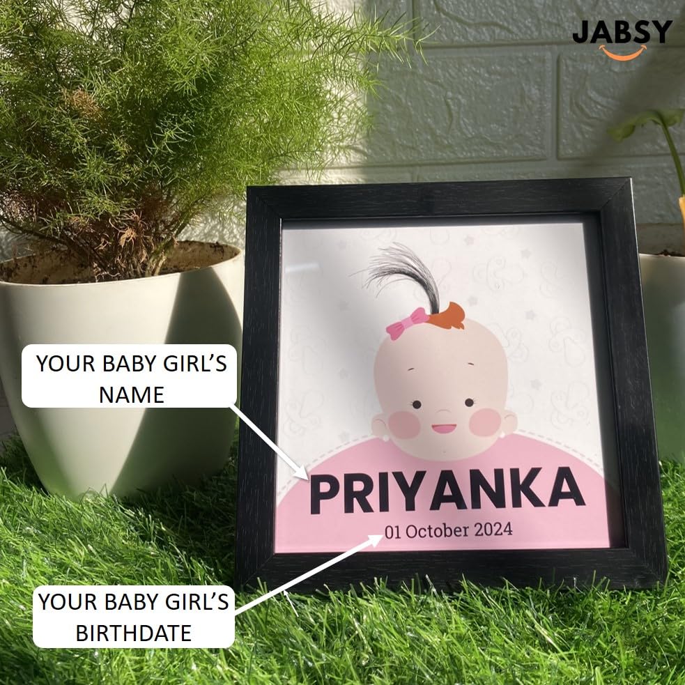 Personalized Baby Photo Frame with First Hair Storage – Custom Name & Birthdate – Premium Wood, 7×7 Inches, Acrylic Cover – Gift for Baby Birthday & New Parents (Pink Baby)