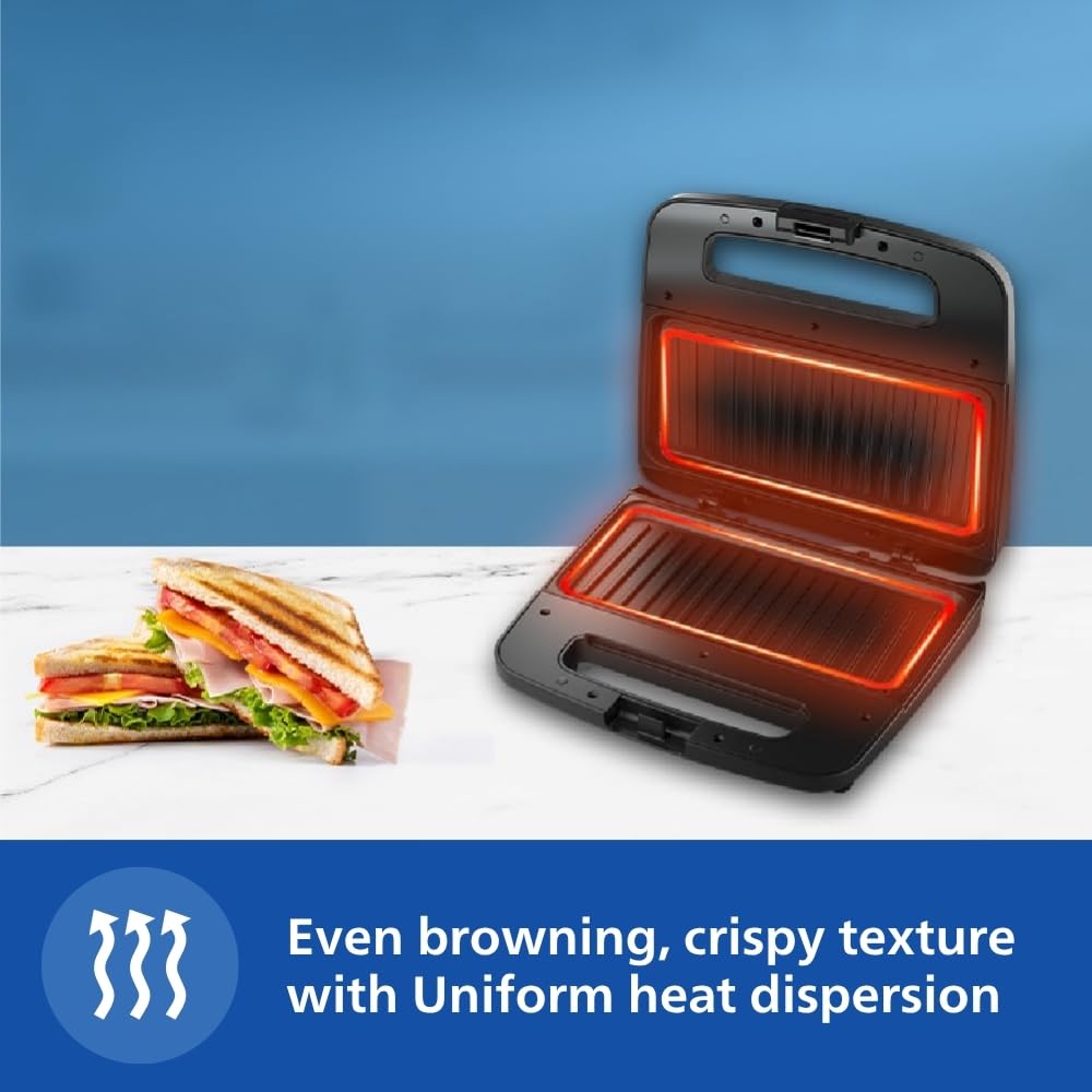 Philips HD2289/00 Panini Sandwich Maker XL Size | Black with Metallic Finish | Non Stick Plate | UHD Technology | Easy Locking | 700W