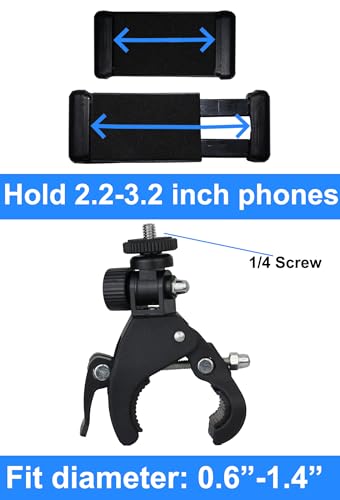 Specification: Phone Holder with Clamp for Stroller, Golf Cart, Cell Phone Mount Holder for Bike, Shopping Cart, Wheelchair, Mic Stand Phone Holder