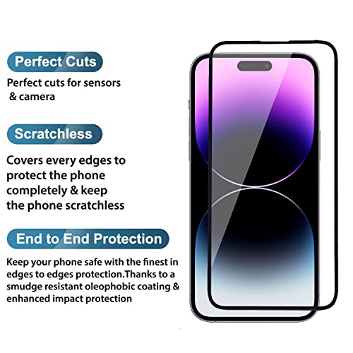 POPIO Tempered Glass Screen Protector Compatible For Iphone 14 Pro (Black) Edge To Edge Coverage With Easy Installation Kit for Smartphone