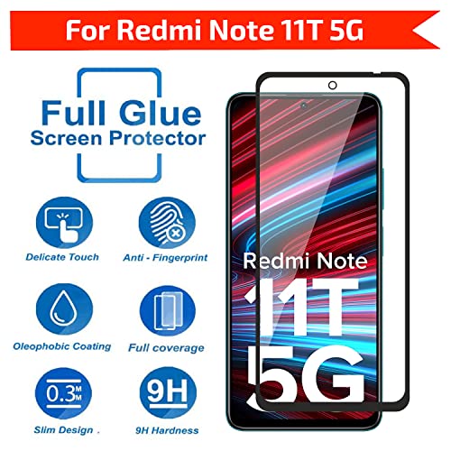 POPIO Tempered Glass Screen Protector Compatible For Redmi Note 11T 5G / Xiaomi Poco M4 Pro 5G (Black) With Edge To Edge Coverage And Easy Installation Kit For Cellphone