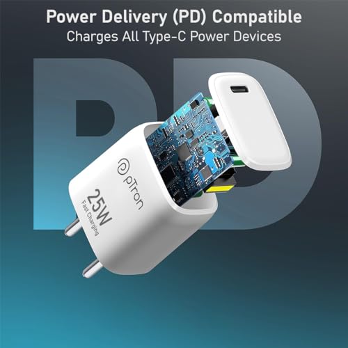 pTron Volta FC19 smart USB Wall Charger comes with 25W Superfast PD (Power Delivery) Compatible Charging | Made in India Power Adapter Compatible with Samsung Smartphones & Tablets.