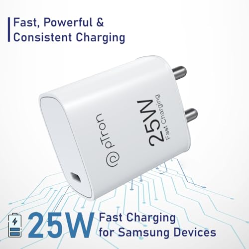 Specification: pTron 25W Type C Mobile Charger Superfast Charging Compatible for Samsung S20 FE/S20+/S21/S21+/S21 FE/S21 Ultra/S22/S23/M14 5G/M15/M32/M33 5G/M34/A05/A15/A35/A54/F14, PPS PD – Volta FC19 (White)
