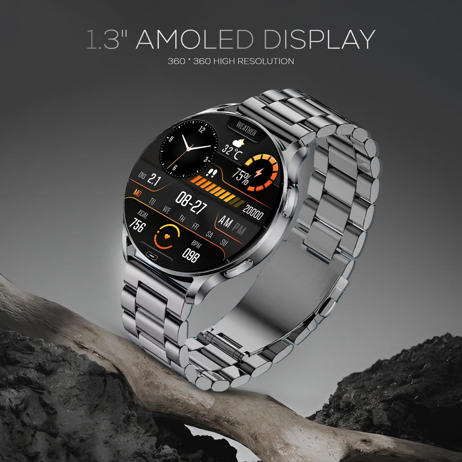 PunnkFunnk Newly Launched Metal Chain Active 2 Max Bluetooth Calling Smartwatch 1.3″ Amoled Display 360*360 High Resolution 4.2 BT with, 100+ Sports Mode with IP68, Tracking, AI Voice Assistant(Grey)