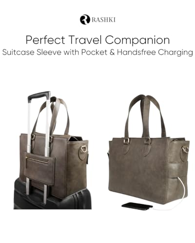 RASHKI TERO – Laptop & Travel Tote Bag for Women | 15.6 Inch Vegan Leather Laptop Bag | Work Tote Bag with detachable Laptop Sleeve | Professional Bag
