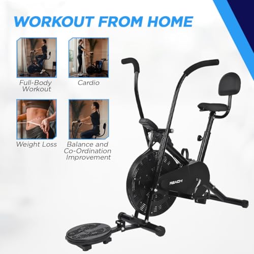 Specification: Reach AB-110 BST Air Bike Exercise Cycle with Moving or Stationary Handle | with Back Support Seat & Twister | Adjustable Knob Resistance | Exercise Gym Cycle for Home Workout & Fitness
