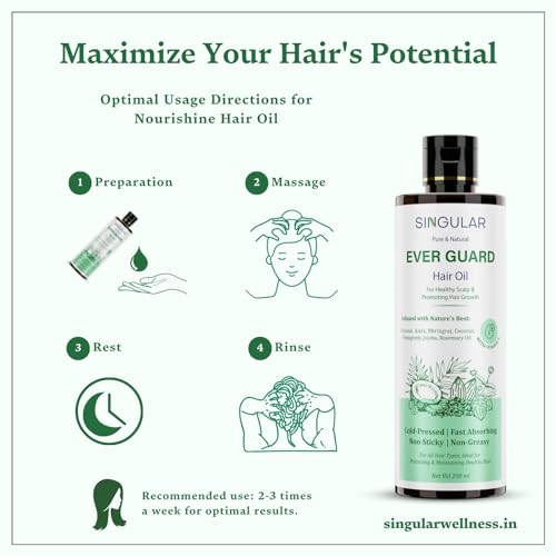 Specification: Singular Ever Guard Hair Growth Oil for Men & Women | Thick Hair Growth & Fall Control, Cold-Pressed with Argan, Almond, Bhringraj, Rosemary Oil & Vitamin E – 200ml