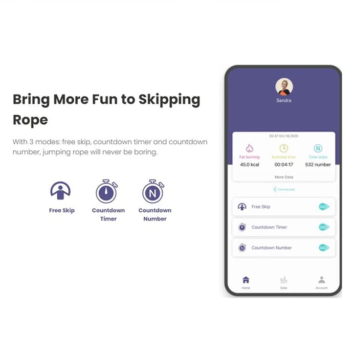 3 Workout Modes: Choose from “Freestyle Workout,” “Jump Countdown,” and “Time Countdown” to customize your exercise routine and work out smarter.