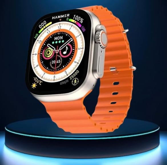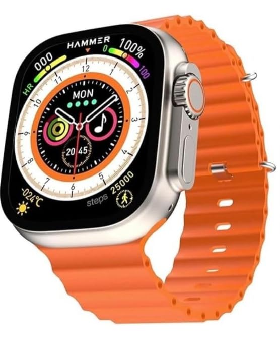 Elevate your fitness journey with the HAMMER Smartwatch, a sophisticated wearable that combines style with functionality. The vibrant orange silicone band adds a pop of colour while ensuring comfort during extended wear. This smartwatch features a stunning digital display that showcases essential health metrics including heart rate monitoring and step counting. The intuitive interface displays time, date, and activity progress in an aesthetically pleasing layout. Stay motivated with comprehensive fitness tracking capabilities that help you monitor your daily activities. The music control feature lets you manage your tunes right from your wrist, making workouts more enjoyable. The sleek silver case design complements the modern square display, making it suitable for both casual and active wear. The durable silicone strap with precise perforations ensures proper ventilation and a secure fit during intense activities. Whether you’re tracking your fitness goals or staying connected on the go, this smartwatch delivers both performance and style in one sophisticated package.