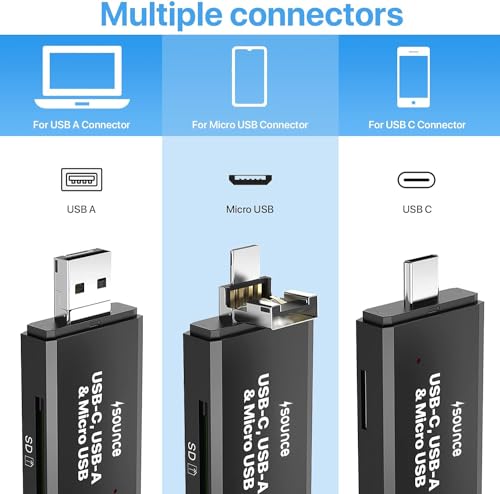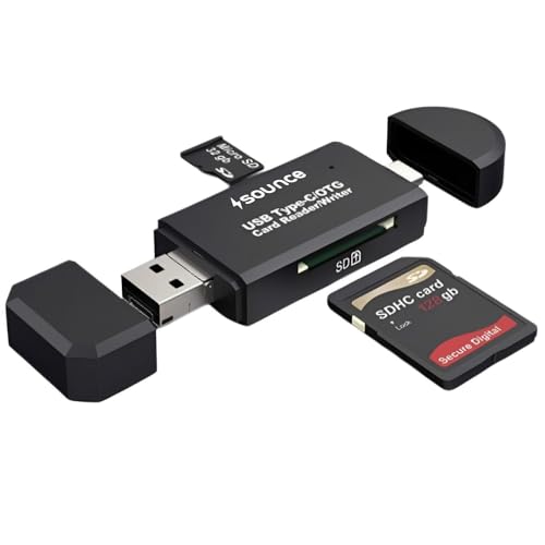 Specification: Sounce 3 in 1 SD Card Reader USB Type C, USB 3.0 and Micro USB OTG Memory Card Adapter, Portable for TF, SD, Micro SD, SDHC, MMC, RS-MMC and Micro SDXC – Black