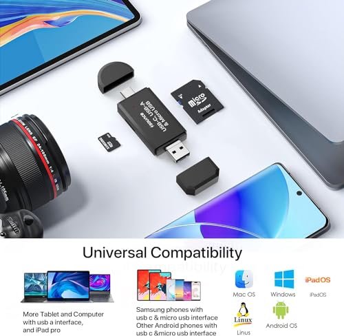 【Universal Connectivity】: Equipped with USB Type C, USB 3.0, and Micro USB OTG interfaces, this card reader ensures universal compatibility with a wide range of devices, including laptops, tablets, smartphones, and more. The flexibility of multiple connection options makes it a convenient solution for various devices.