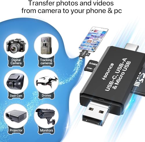 【Compact and Portable Design】: Designed for portability, the Sounce 3 in 1 SD Card Reader features a compact and lightweight design, making it an ideal companion for users on the go. Easily slip it into your bag or pocket, and enjoy the convenience of accessing your memory cards anytime, anywhere.