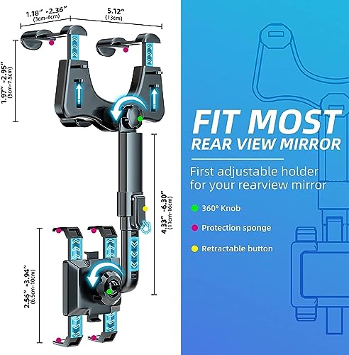 Specification: Sounce 360 Rotatable and Retractable Car Phone Holder Multifunctional Car Rearview Mirror Phone Holder, 360 Degree Rotatable Rear View Mirror Phone Mount, for All Mobile Phones