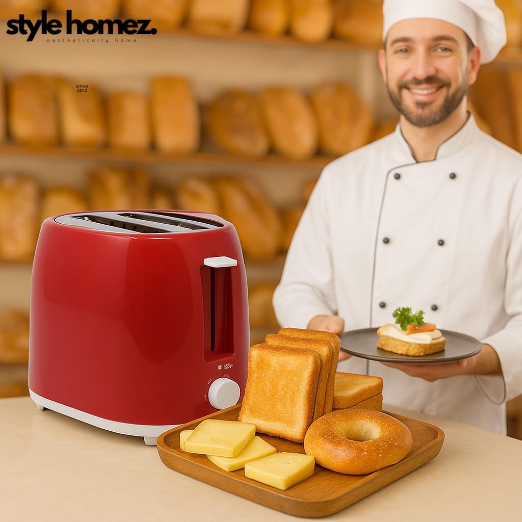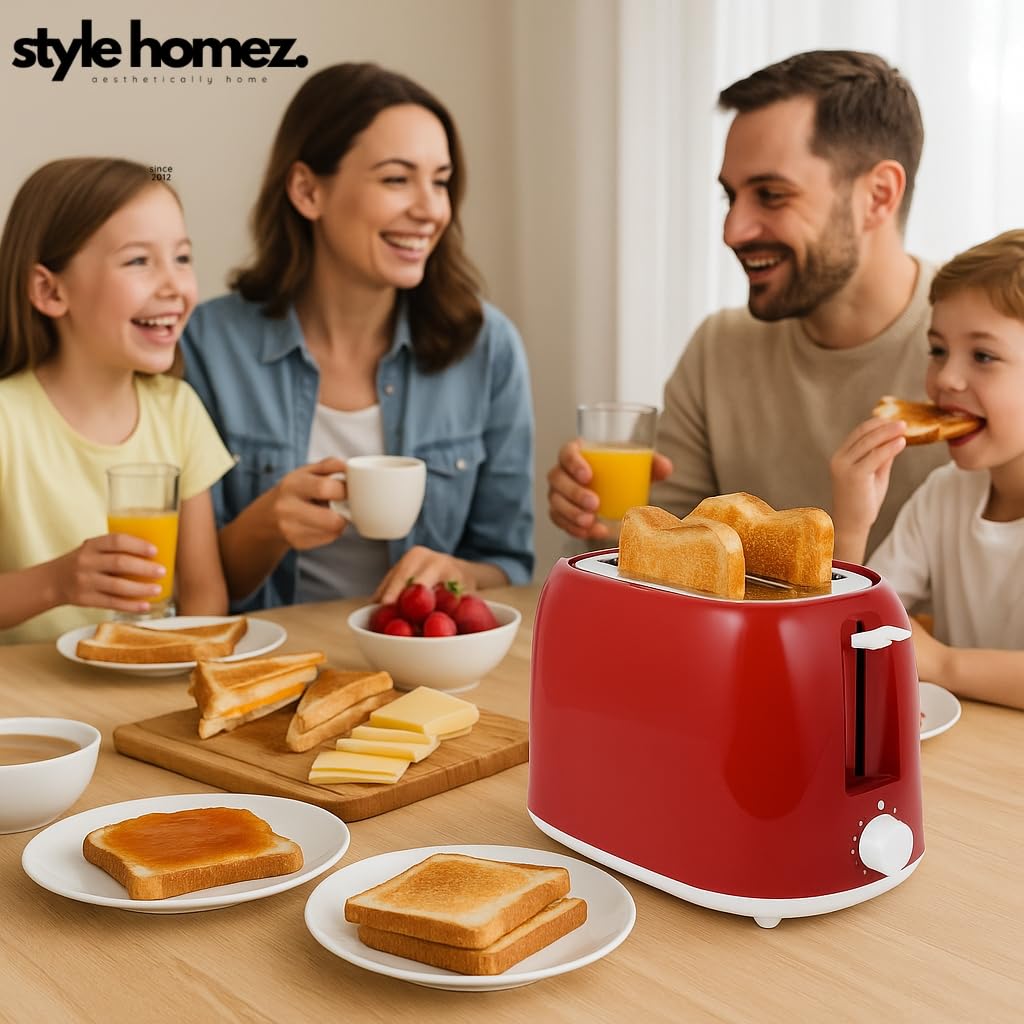 Start your mornings the smart way with the Style Homez CLASSIC 2-Slice Pop-up Toaster. Designed to save you time and effort, this 750-watt toaster ensures perfectly browned bread slices at the touch of a button. No more juggling between getting ready for work and keeping an eye on the tawa – just pop in two slices and let the toaster do its job while you focus on your morning routine. With its 6-level variable browning control, the Style Homez CLASSIC gives you the freedom to enjoy toast just the way you like it – from lightly golden slices for your Nutella spreads to evenly crisped bread perfect for sandwiches or a hearty breakfast with eggs. The automatic pop-up feature ensures that your toasts are never overdone, while its shock-proof body makes it safe and easy to use, even on busy mornings. Adding functionality with flair, this pop-up toaster stands out with its vibrant red finish and sleek design, making it a stylish addition to any modern kitchen. Compact yet powerful, the Style Homez CLASSIC is more than just a toaster – it’s your everyday breakfast partner, turning plain bread into warm, golden, and delicious toasts in minutes.