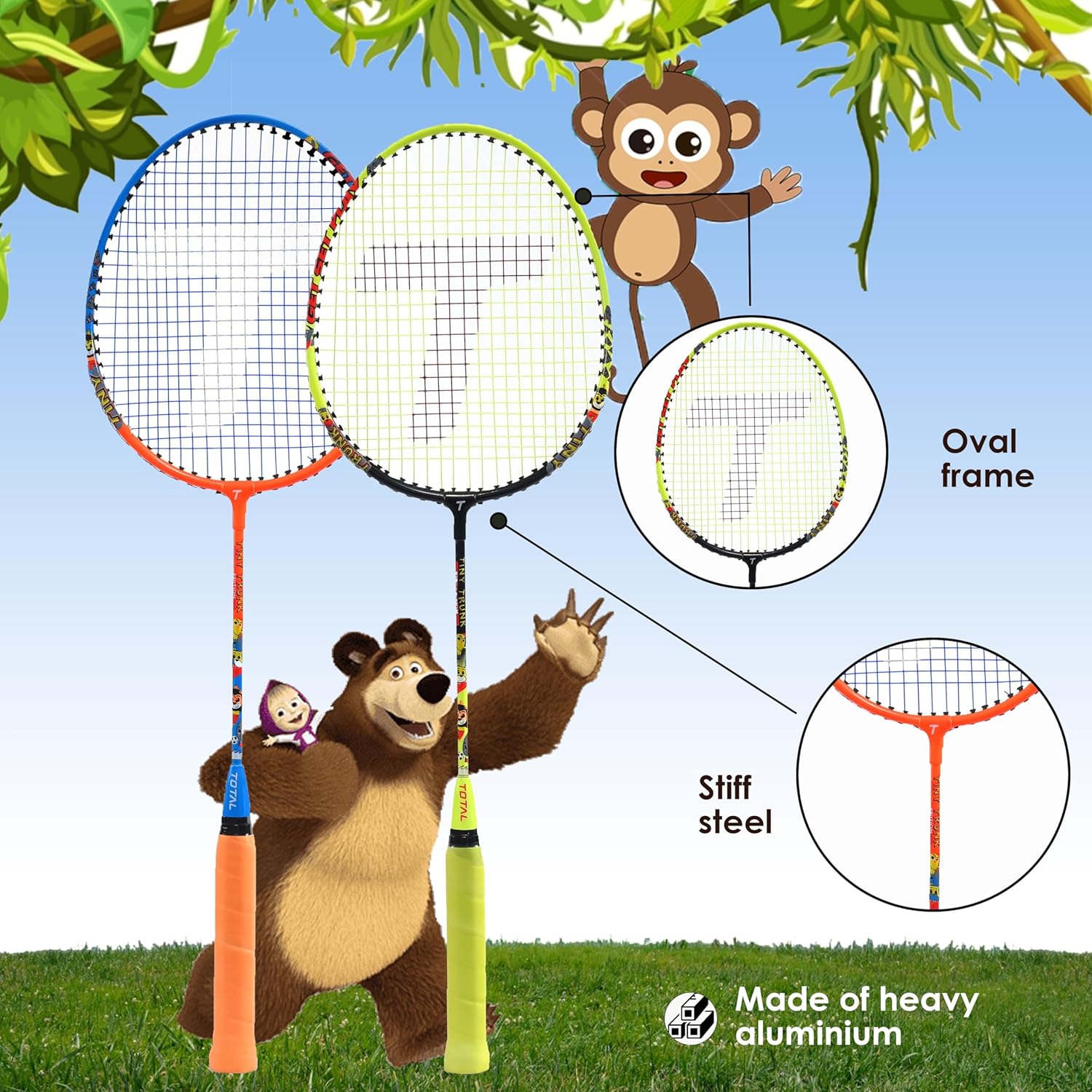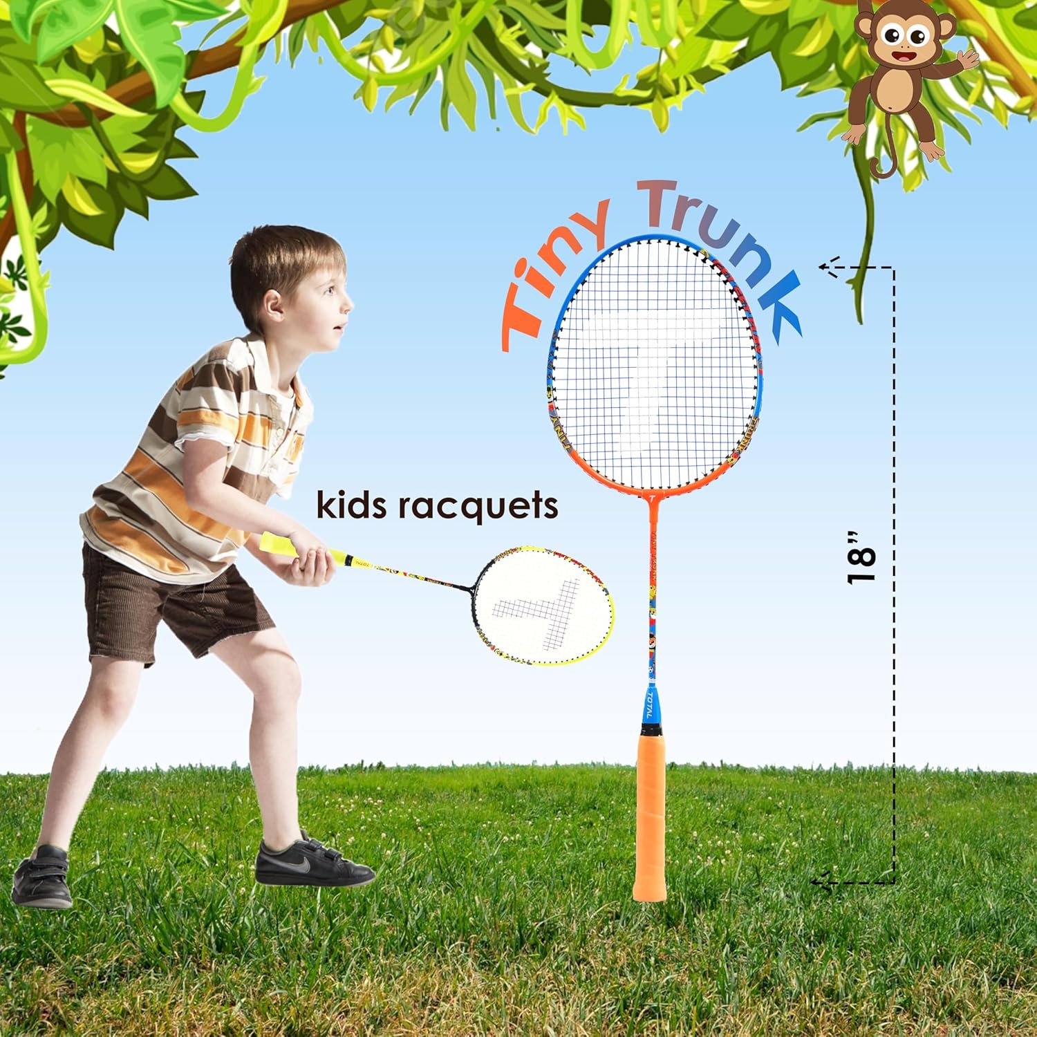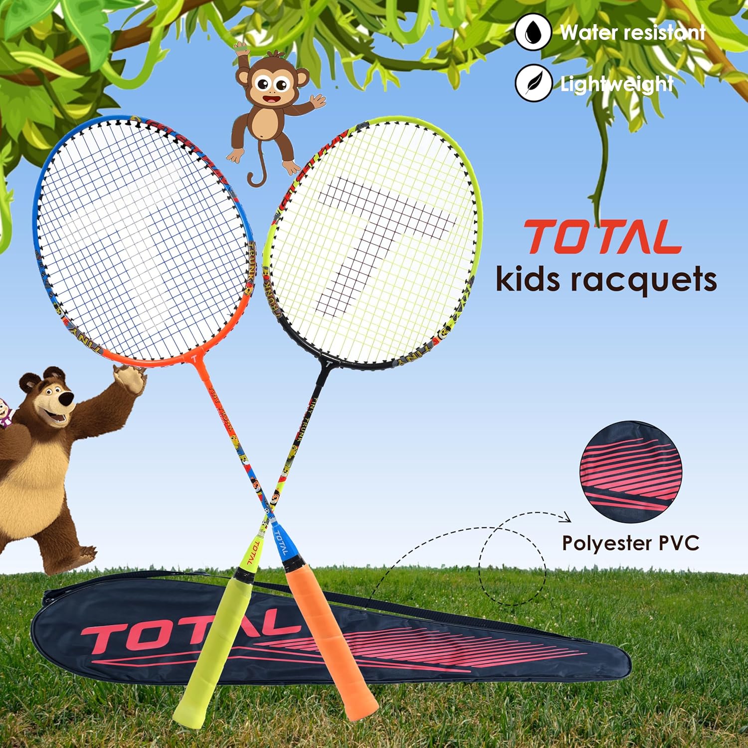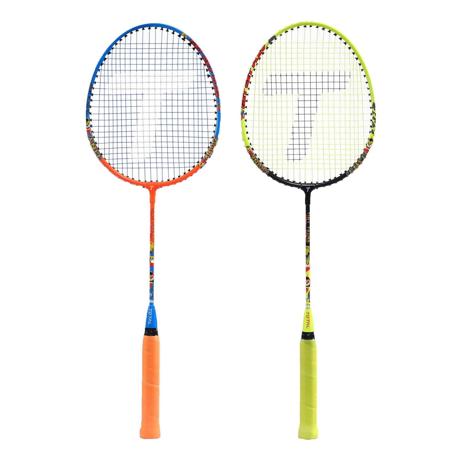 Total Tiny Trunk Junior Badminton Racquet Set for Kids, Age 6-11, 2 Pieces, Multicolour, Lightweight Aluminium Racquets with Cover