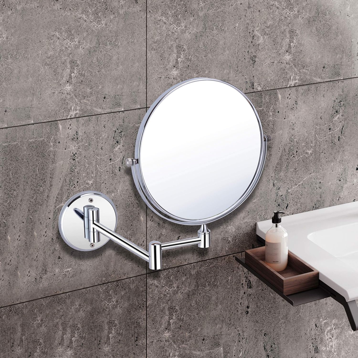 U-S-F BATH ACCESSORIES USF Makeup Mirror | Shaving Mirror | Bathroom Mirror with 5X Magnifying Mirror & Wall Bracket with Adjustable Frame (Silver)(Round) Framed