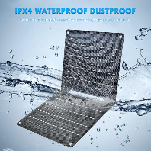 Easy to Use: Unfold your solar panels, pick up the Usb, then connect your devices with the high efficiency solar panel. You could just hang it on the backpack, tent, tree, beach, or anywhere the sunlight is not sheltered. Please note that water can’t enter the circuit board.