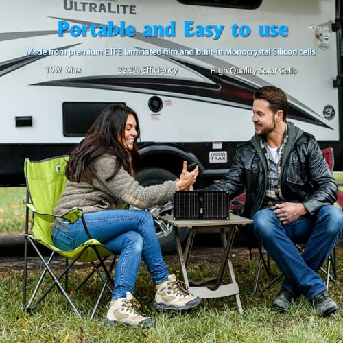 Portable Carry: The Portable solar panel charger is a great option if you’re taking an extended camping trip or if you’re traveling somewhere with an unreliable power grid. With compact Fold size(8.4 x 7.9 x 0.8inches) and lightweight design(0.69 lbs – only panel), it’s portable and light enough to fit into any camping backpack or hiking daypack. it is a great choice for outdoor activities, travel, and emergencies.