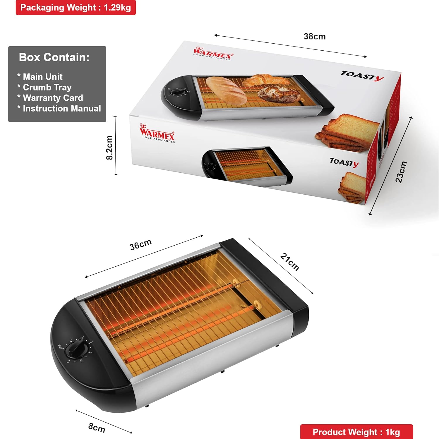 WARMEX TOASTY (STAINLESS STEEL ELECTRIC OPEN BREAD TOASTER – 600 WATTS)