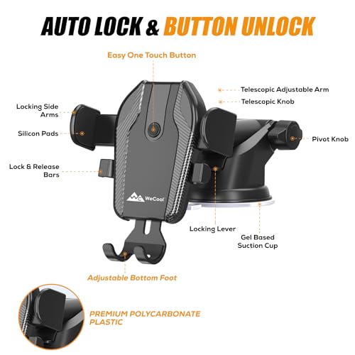 Specification: WeCool C1 Car Mobile Holder, Multiple View Angle with Height Adjust & 360° Rotation, Strong Suction for Windshield & Dashboard, Universal Mobile Holder for Car with One-Click Lock for All Smartphones