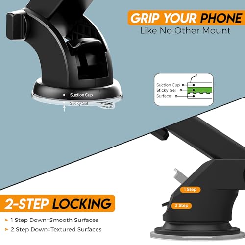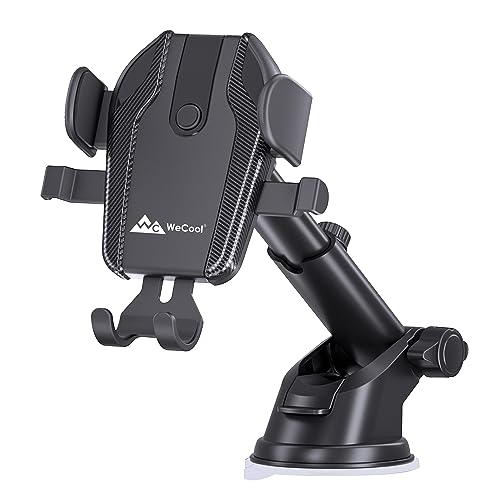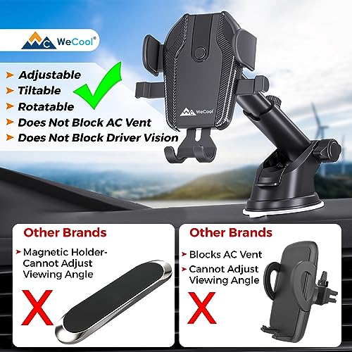 WeCool C1 Car Mobile Holder, Multiple View Angle with Height Adjust & 360° Rotation, Strong Suction for Windshield & Dashboard, Universal Mobile Holder for Car with One-Click Lock for All Smartphones