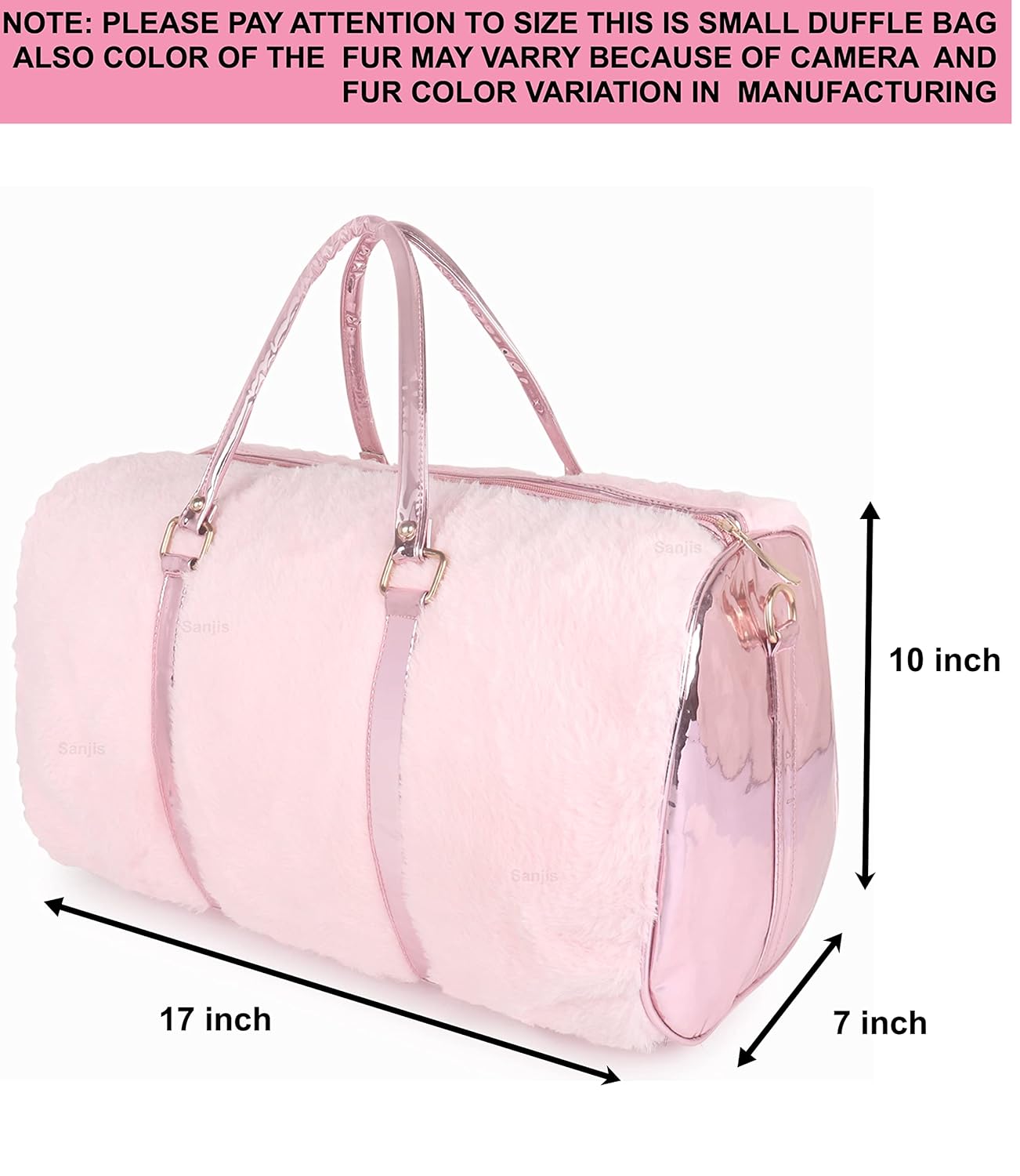 5-IN-1 USES: (1)duffel bag.(2)Faux fur weekender bag.(3)Fancy Grey gym tote.(4)17 inch workout bag.(5) large furry overnight purse for women.