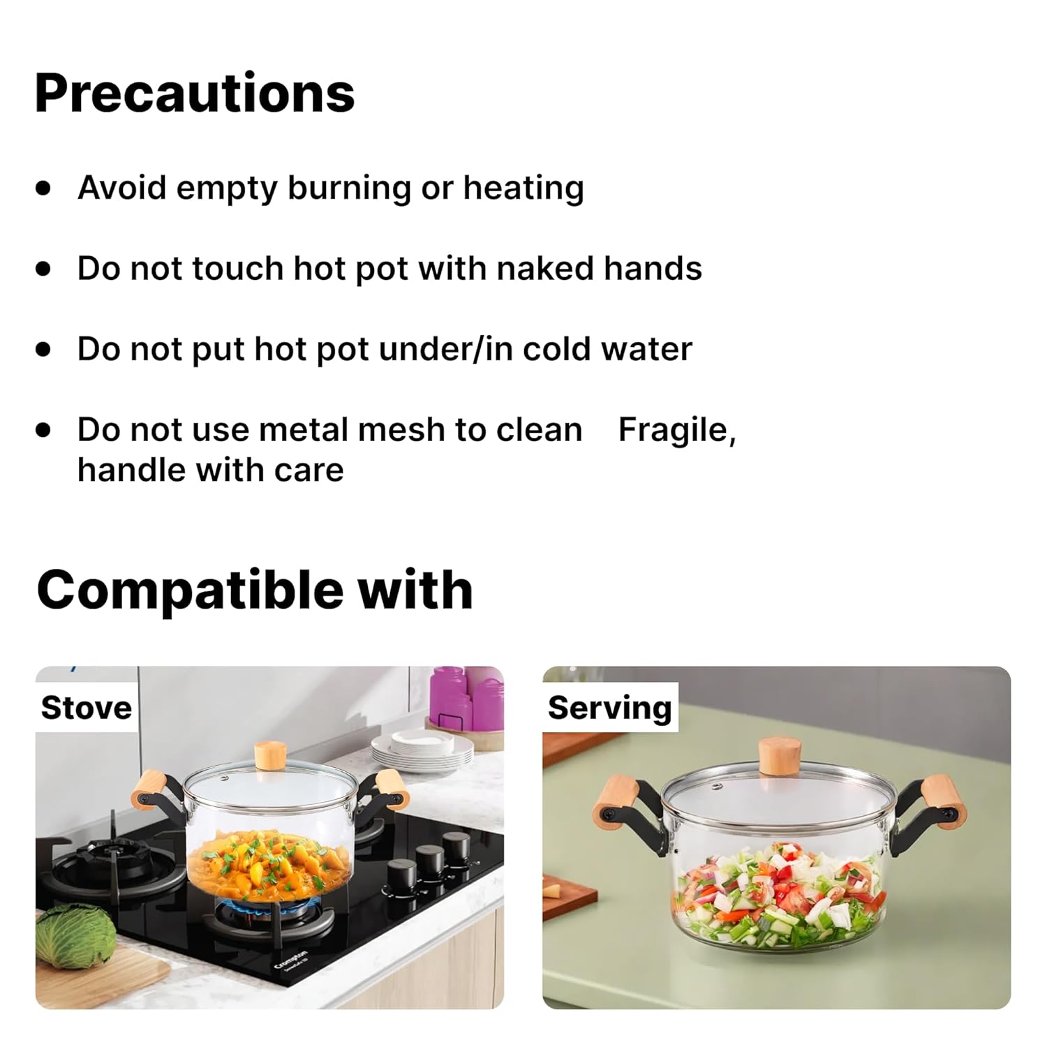 Introducing the Borosilicate Glass Cookware, a versatile and durable addition to your kitchen. With a generous capacity of 2.8 liters, this round pot is expertly crafted from borosilicate glass, perfect for various cooking tasks including boiling water, preparing soup, and cooking rice. Its tempered glass lid features a bakelite knob and can withstand temperatures from -20℃ to 300℃, making it microwave safe and suitable for use on gas stoves and induction cooktops. Designed for regular use, it is both lightweight and scratch-resistant, ensuring long-lasting performance. The double handle design allows for easy handling, and cleaning is a breeze—simply wipe with a cloth instead of using steel wire balls to maintain its condition. Ideal for family cooking, this pot excels at steaming vegetables, boiling eggs, and preparing sauces, fitting seamlessly into your kitchen or for outdoor BBQs. Customers appreciate its aesthetic appeal and functionality, while the odor and stain-resistant properties enhance its usability. With this cookware, you can confidently prepare everything from baby food to hearty stews. Say goodbye to lid issues and design concerns with this carefully constructed cookware that prioritizes quality and user satisfaction, making it the perfect cooking pot with lid for your culinary adventures. Enjoy the benefits of a multifunctional kitchen companion designed to elevate your cooking experience!
