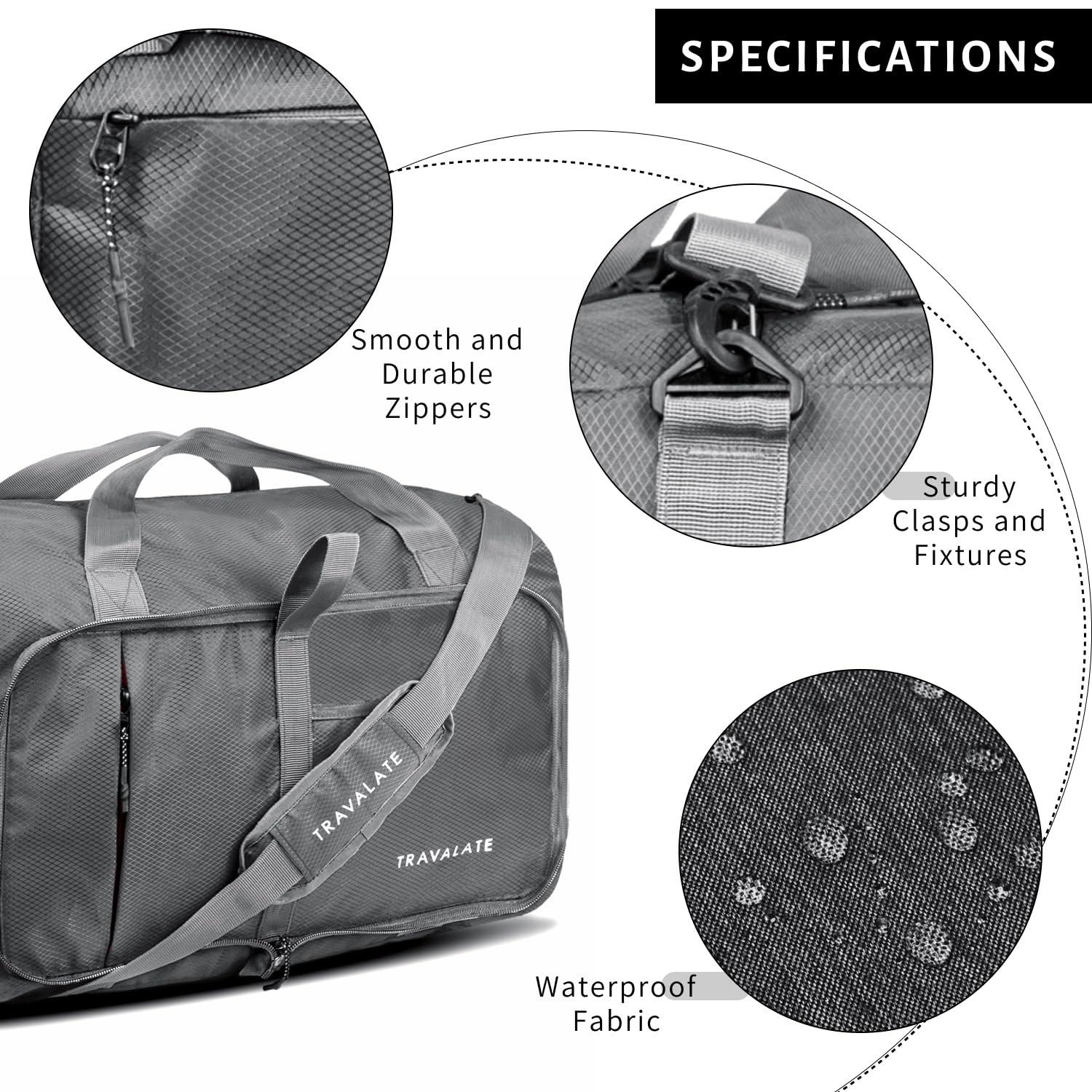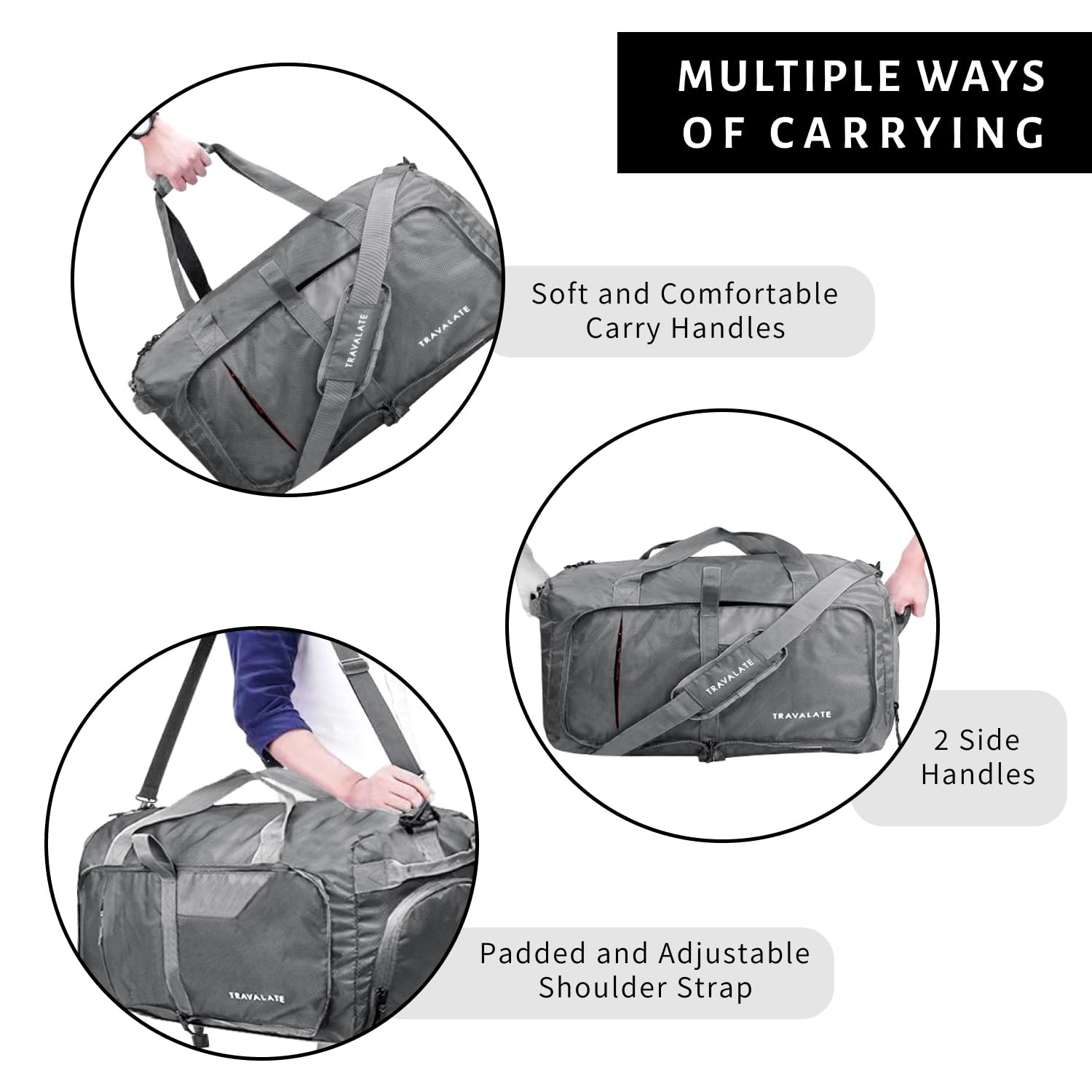 FOLDABLE AND SPACIOUS – The travel organizer bag can be folded into a really small size taking up so little space but opens up to have about 50L capacity of travel bags to use as a luggage bag in case that your suitcase swells. This travel duffel bag is designed to work best with bag packing cubes – to give you an organized lightweight travel experience.