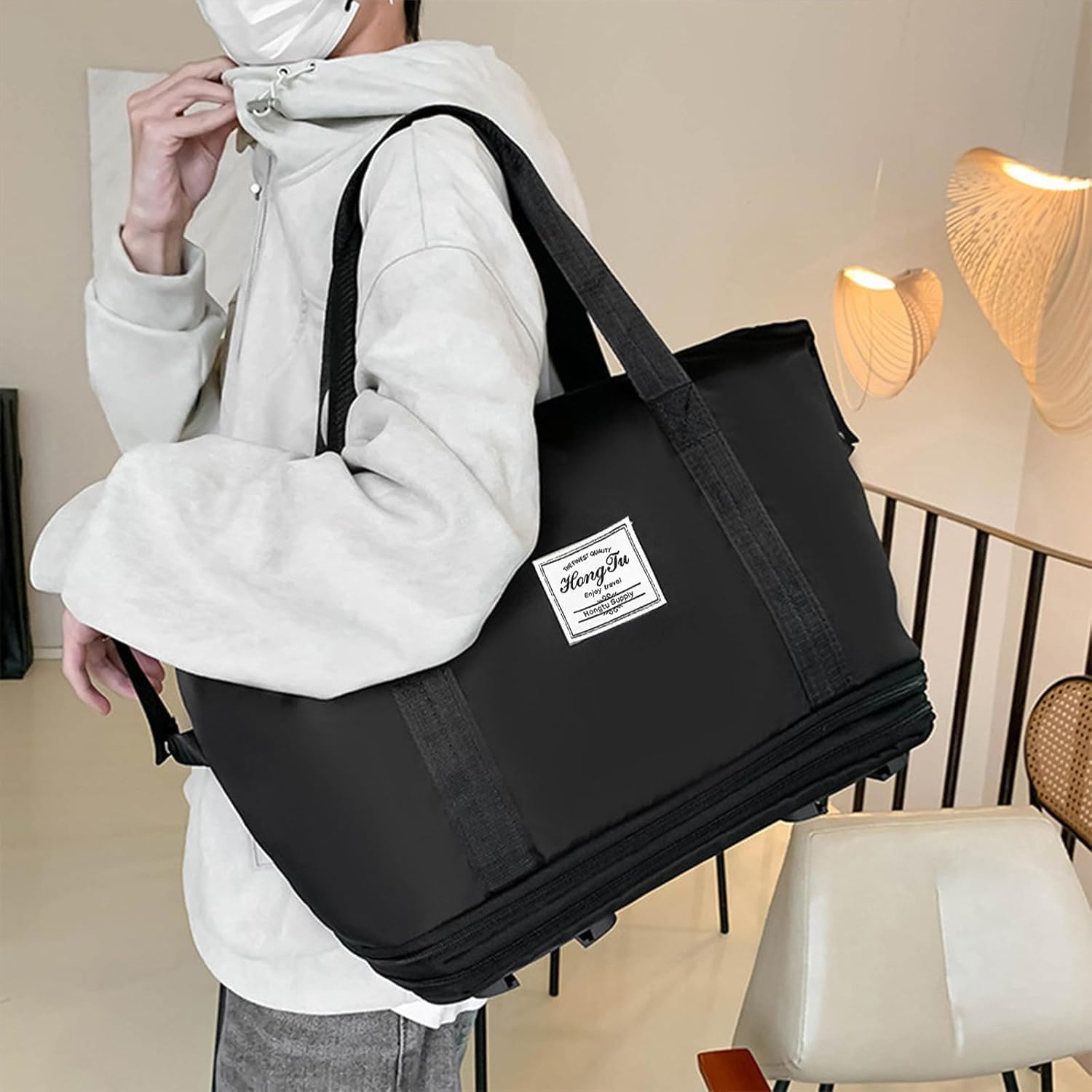 Foldable and Expandable: Two zippers at the bottom allow for capacity adjustment; expands from 28L to a maximum of 58L