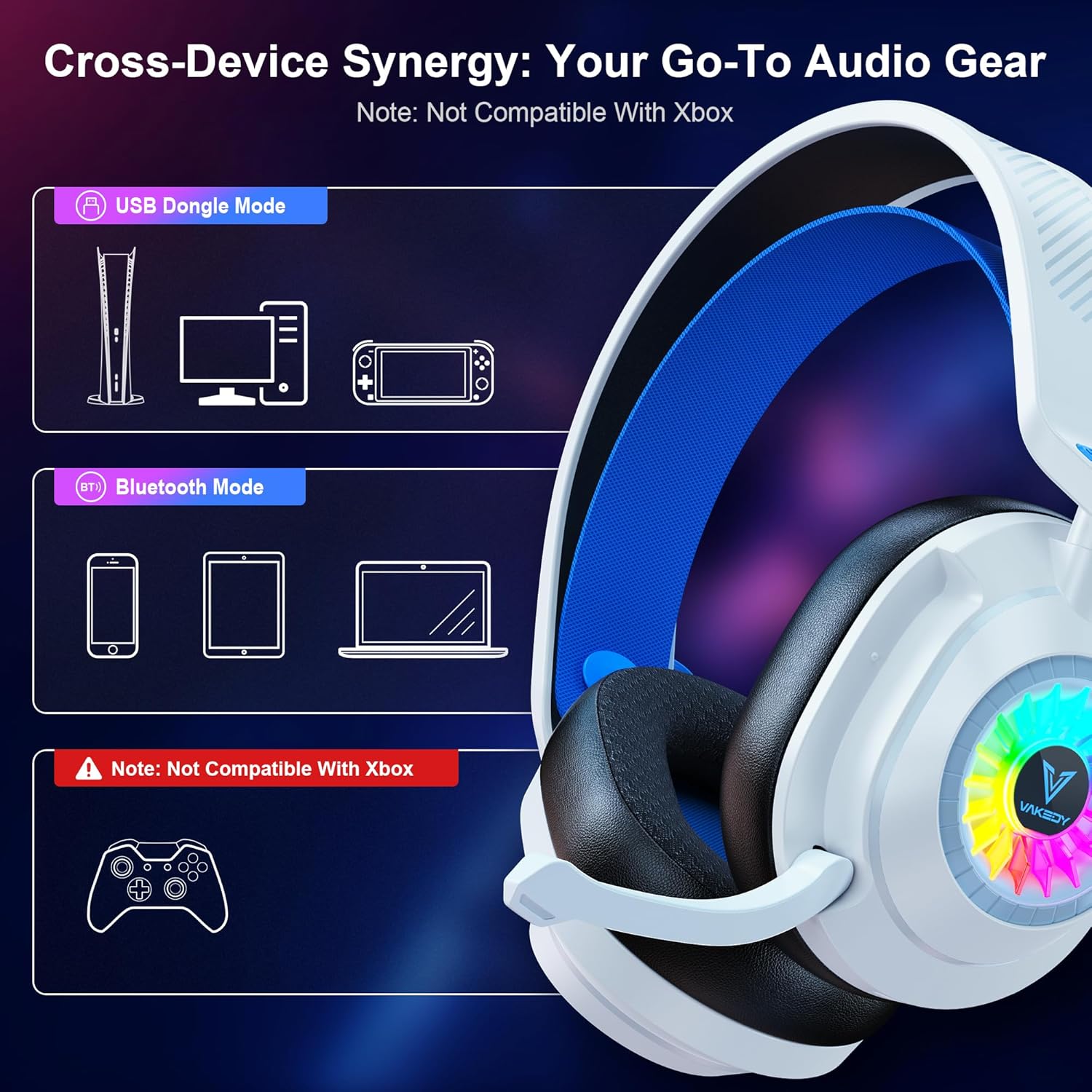 【Versatile Wireless Gaming Across Devices】Enjoy the freedom of wireless gaming with our headset, compatible with PS5,PS4,PC,Switch via a USB dongle. For those moments when you want to switch to mobile gaming, our Bluetooth gaming headset ensures a seamless transition, offering the same premium audio experience