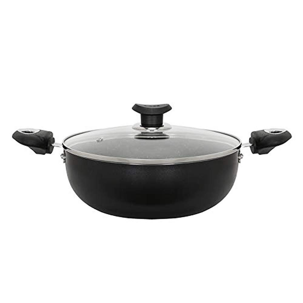 Package Content: 1- Piece Deep Kadai (24 cm /3.1 Litre) , 1-Piece lid , 1- Piece Frypan (24cm) ,1- Piece Tawa (25cm) , 1- Piece Saucepan (16cm / 1.7 Litre) and 1- Piece Handi (3.8 Litre/ Small)