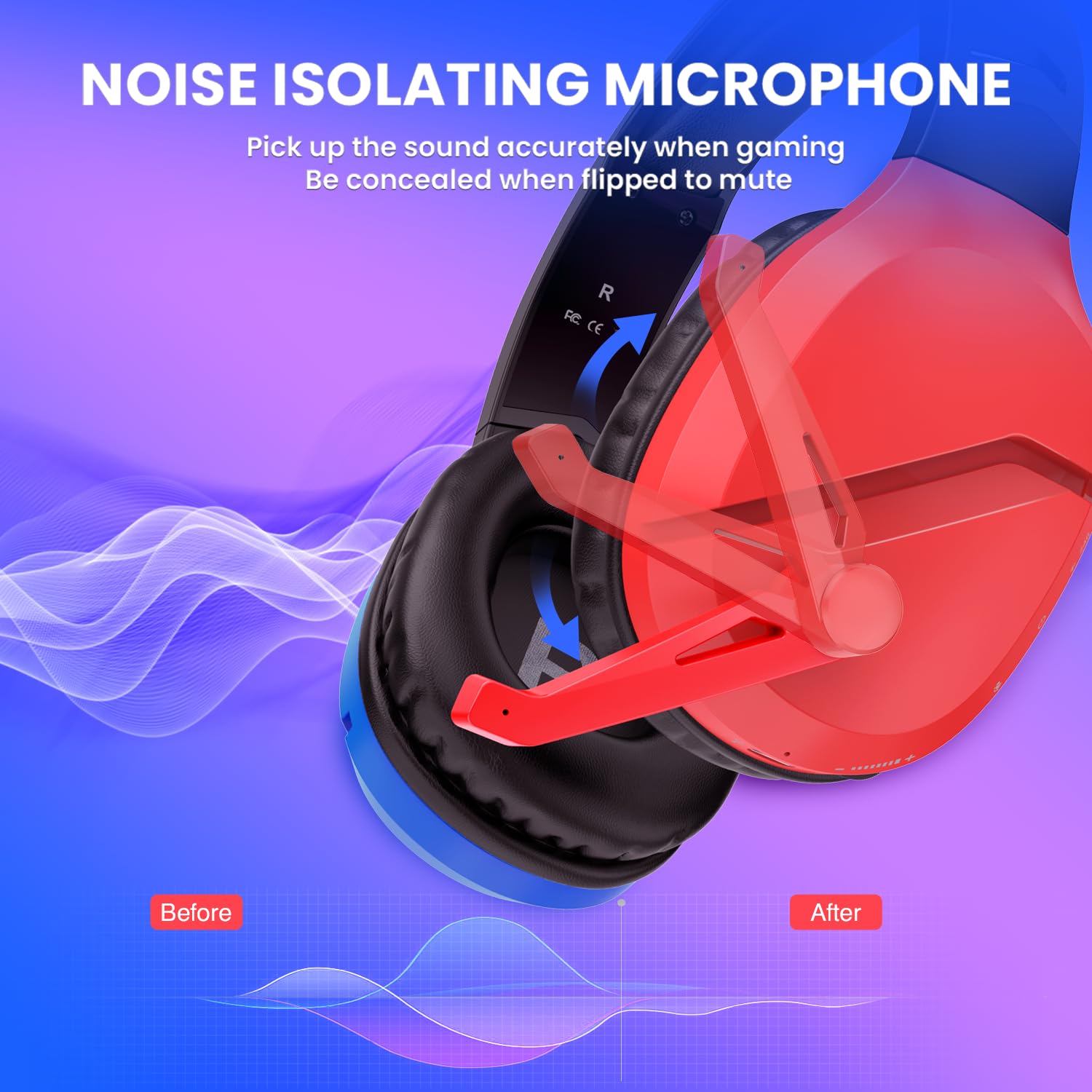 【90° Rotating Ear Cup & On-ear Function Control】 — The 90°rotating ear cups with bold styling that rotate for additional comfort when being worn around your neck. Delicate and convenient on-ear function control, with Indicator Light/BT/2.4G/Power Button/Mic On/Off/Volume Control/Type C for Charge or 3.5mm, making you could have your operating easier and more portable without distracting you from your games.